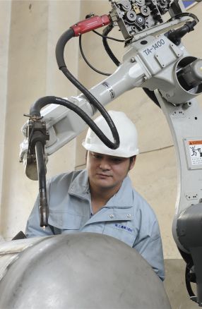 2臺(tái)松下焊接機(jī)器人,高脈沖焊接,無(wú)飛濺,自動(dòng)化程度高,焊縫美觀(guān)